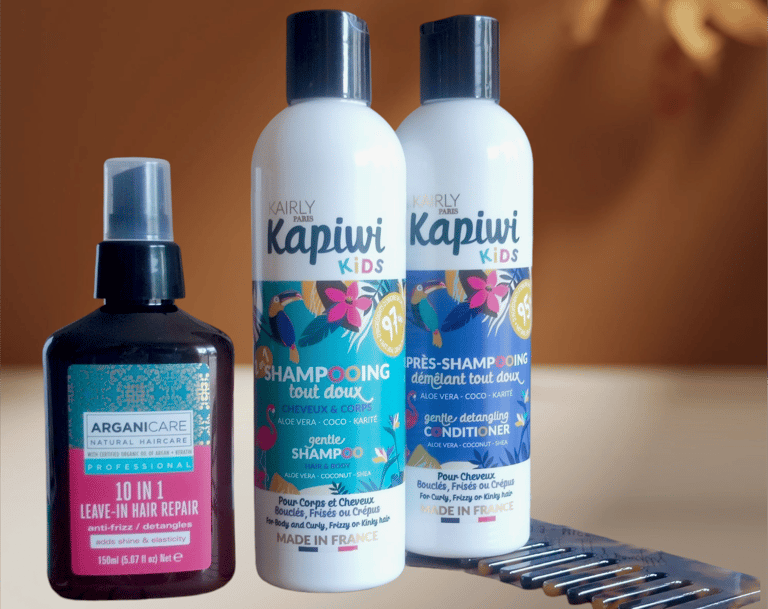 Cette box mise sur une alliance fondante d’aloe vera et de beurres nourrissants pour faciliter le passage du peigne. L’huile de coco et le beurre de karité assouplissent les boucles, tandis que l’huile d’amande douce et l’huile de jojoba apportent brillance et souplesse. La kératine végétale renforce la fibre capillaire pour un démêlage tout en douceur.